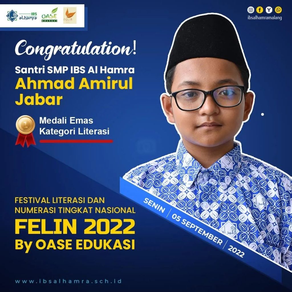 Alhamdulillah, prestasi kembali diukir oleh para santri IBS Al Hamra., yakni 10 santri IBS Al Hamra kembali meraih medali emas, perak maupun perunggu dengan total 13 medali yang diperoleh dalam FELIN Competition 2022. Acara perlombaan ini diselenggarakan pada tanggal 4 September 2022. Berikut daftar 10 santri dan ke – 13 medali yang diperolehnya : Medali […]